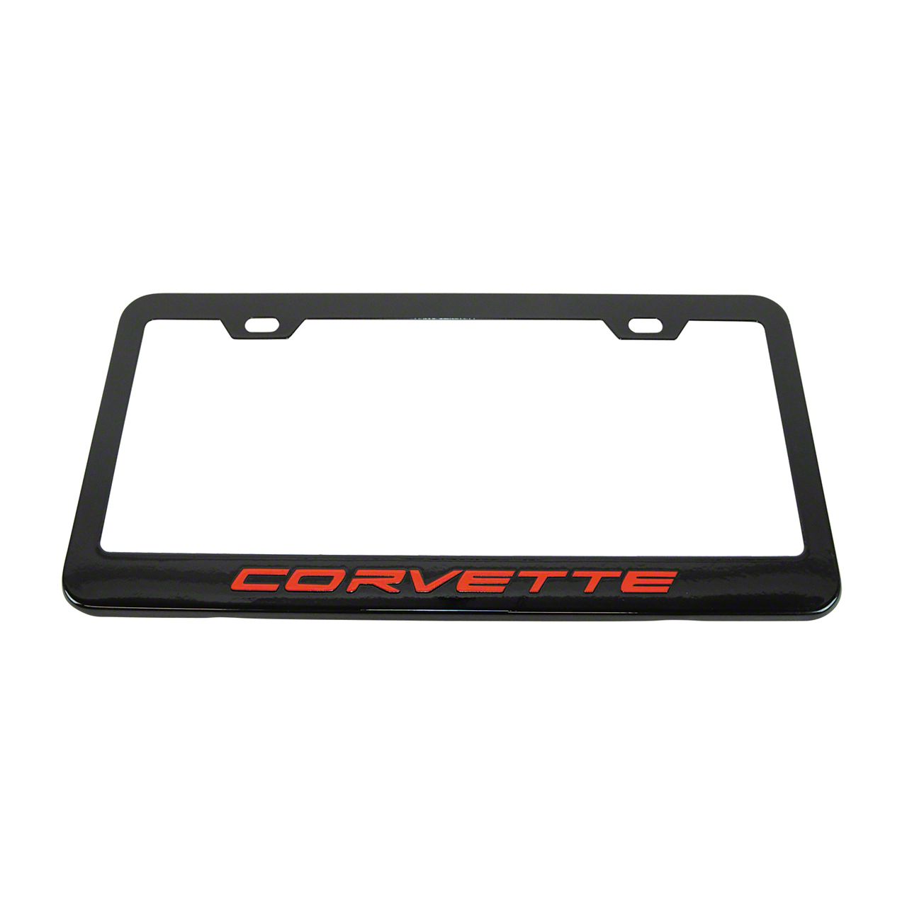 License Plate Frame with Red Corvette Script; Matte Black (Universal; Some Adaptation May Be Required)