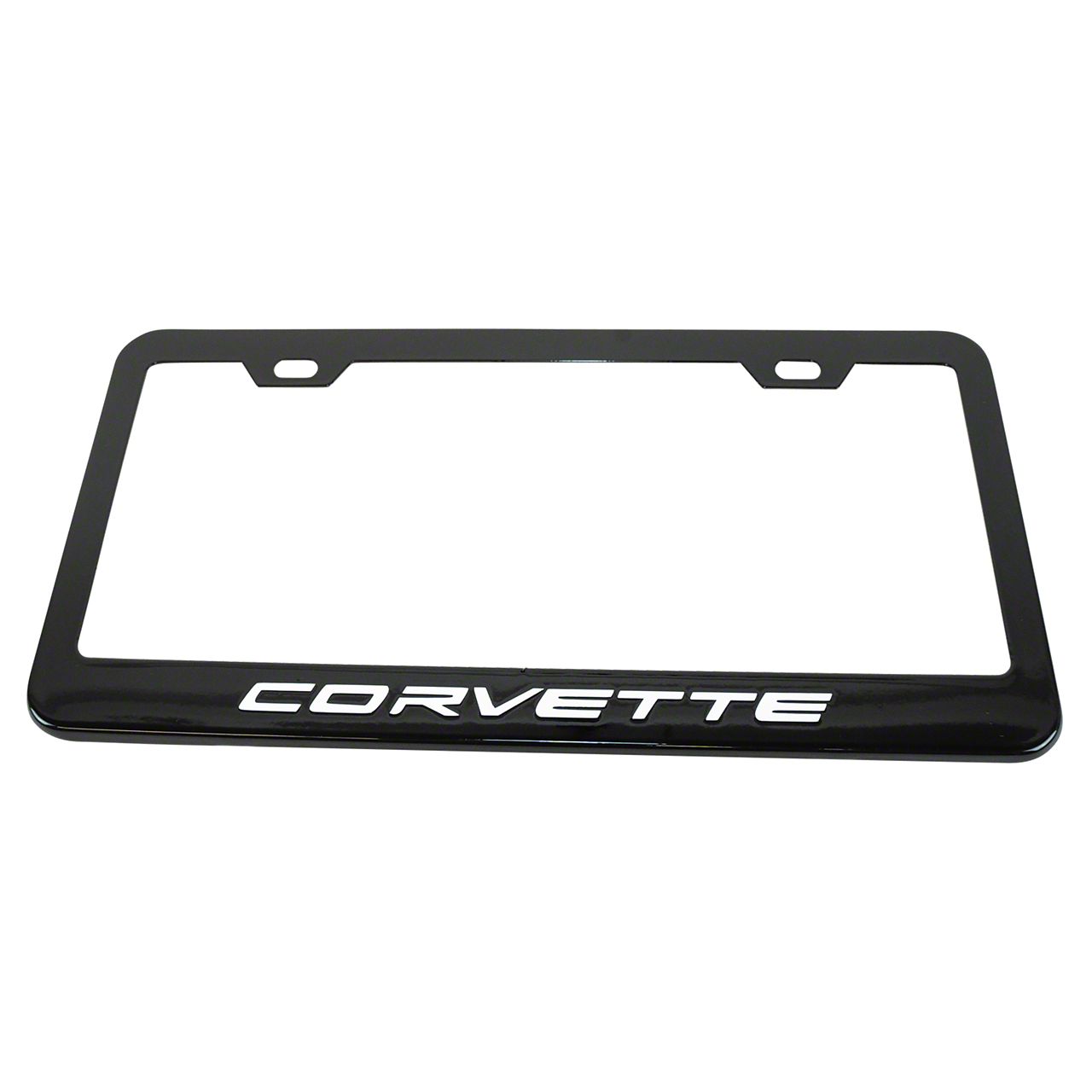 License Plate Frame with White Corvette Script; Matte Black (Universal; Some Adaptation May Be Required)