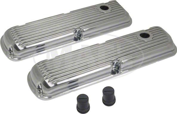 Now we have that look again in an oil pan and a pair of valve covers created in the great Cal Custom tradition. Add a pair of valve covers up top and mount that finned aluminum oil pan on the bottom end, and you've created a cool, customized engine bay quickly and easily.