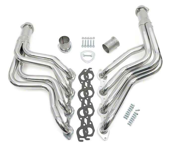 Each set includes a pair of gaskets, header flange bolts and collector bolts. No collector gasket is needed. Hedman Hedders is so confident in the quality of its headers that these headers are factory backed by a Limited Lifetime Warranty. These headers have a high temperature, POLISHED-SILVER ceramic finish that resists corrosion, and can withstand temperatures up to 1400 degree F. This finish is covered by a 5 year factory warranty, in addition to Hedman's standard lifetime header warranty.
