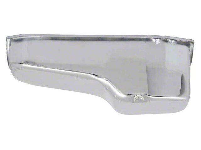 Replacing your original oil pan with a chrome reproduction can enhance the appearance as well as add a high performance look! This pan is designed to fit as original, has a 4 quart capacity (add 1 quart when changing filter) and includes a drain plug. The dipstick is on the passenger side and you can use the original oil pump pickup. Uses a two-piece rear main seal.