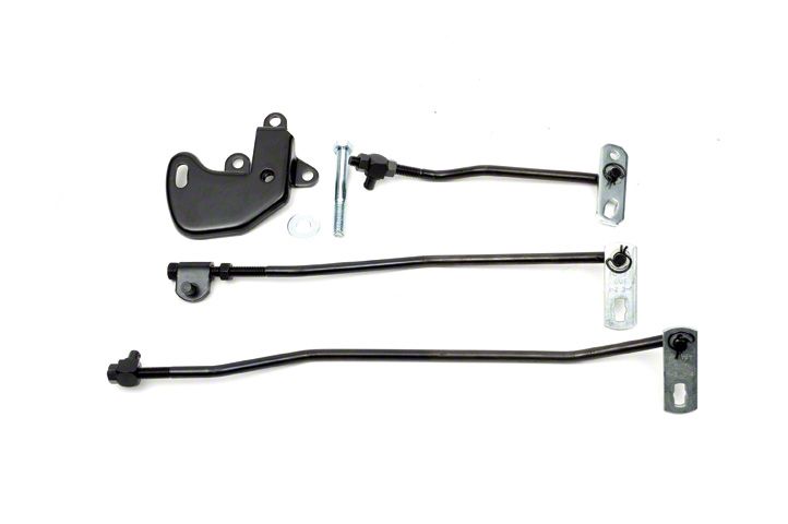 Excellent value imported reproduction kit for original factory Hurst shifters. Three shift rods, correct swivels, levers with stamped text, shifter mounting plate and all needed hardware 1969 Hurst 4-Speed Shifter Linkage Kit For Cars With Big Block Engine
