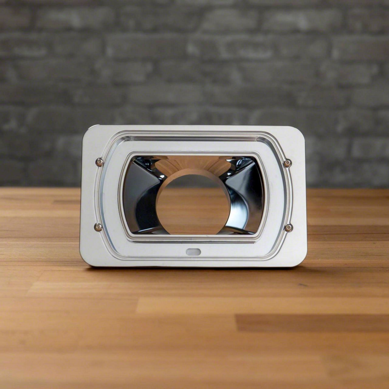 This Billet Aluminum Air Intake with optional Halos is the perfect addition to your FourSix Headlight kit or as a standalone intake. Now you can create a functional and wicked-looking headlight and intake system. These have been designed and engineered to mount into your existing headlight bucket and trim ring, mounting just like a headlight.