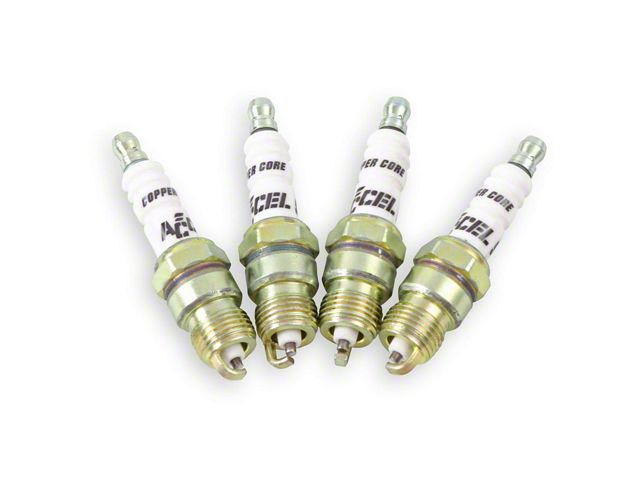 ACCEL's patented race proven spark plugs in a Shorty configuration. The overall length has been reduced 3/16 in to 3/8 in (depending on the specific spark plug) to gain critical air gap between the spark plug boot and the exhaust manifold or header tube. This helps eliminate burning the spark plug boot or dimpling the header tube. The shorter spark plug length also can make it easier to install an remove the spark plugs in certain applications where there is not a lot of room to fit a socket or move a wrench around. ACCEL Shorty Spark Plugs are made with a Copper core which is a better conductor than Platinum and Iridium. They deliver a stronger spark especially in high performance applications where high combustion pressures are present. Copper is much better at dissipating heat than o