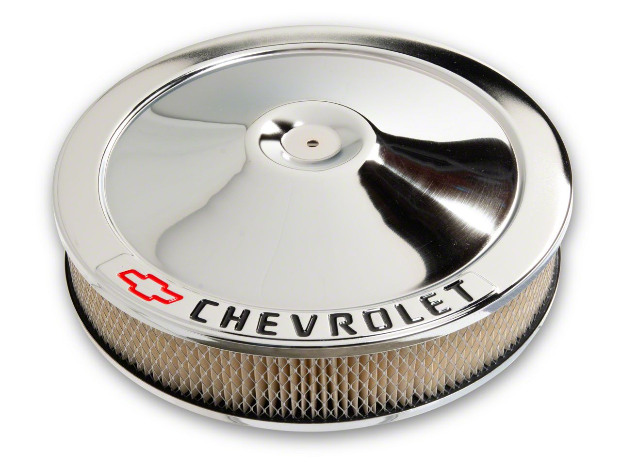 Air cleaners are meant to keep pollutants from infiltrating the carburetor and potentially damaging the engine of your 1967-1992 Chevrolet Camaro. At Rick's Camaro, we are absolutely devoted to keeping your Camaro in working order. These 14" chrome air cleaners, complete with Chevrolet script and bowtie logo, will help secure your 1967,1968, 1969, 1970, 1971, 1972, 1973, 1974, 1975, 1976, 1977, 1978, 1979, 1980, 1981, 1982, 1983, 1984, 1985, 1986, 1987, 1988, 1989, 1990, 1991, or 1992 Chevy Camaro against harmful agents. As always, remember to protect your ride with Rick's Camaro.