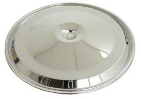 Chrome Air Cleaner Lid. The Air Cleaner Cover, Closed Element, Chrome, 1967-1972 is designed to replace the original air cleaner lid on dual snorkel air cleaner assemblies. It provides a precise fit and an impeccable appearance, helping to maintain engine performance while adding a polished look to the engine bay. This component is ideal for restoring or upgrading classic Camaros with an authentic-looking air cleaner lid.