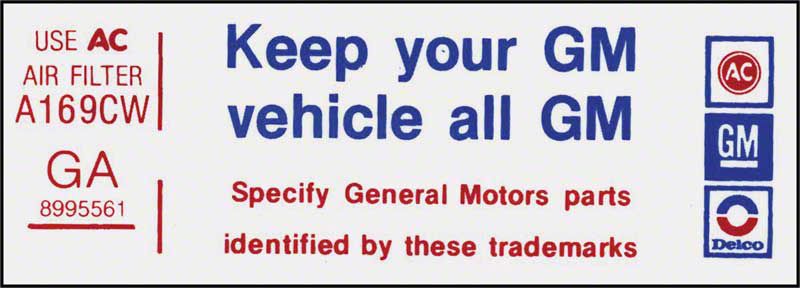 Air Cleaner Decal, Keep Your GM Car All GM (1979 Camaro)Find parts that fit my vehicle