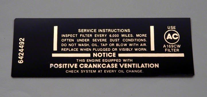 Air Cleaner Decal, Service Instruction, 327/210hp (67-68 Camaro)Find parts that fit my vehicle