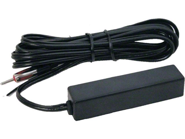 Why break up the clean lines of your custom 1967-2015 Camaro with an external antenna? Custom Autosound offers an interior-mounted hidden antenna as a great alternative. This active magnetic type, amplified electronic AM/FM antenna gives optimum radio reception without drilling or grounding. It requires 12VDC power that is switched on with the ignition. For best reception, the adhesive-backed antenna body must be unobstructed by metal. It's typically mounted to the top inside of the windshield or on the rear window/package shelf area. The pre-wired 104" long power lead and antenna cable allows you to find just the right spot for installation and it can be extended if necessary. Rick's Camaros has all the best audio accessories for your 1967, 1968, 1969,