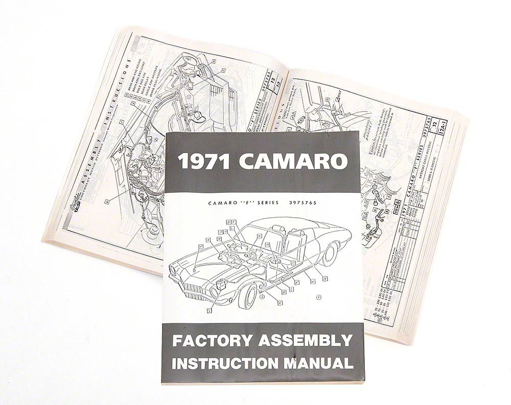 This 1971 original Camaro assembly manual includes hundreds of exploded diagrams and assembly instructions of all areas of your Camaro. Also includes original part numbers, torque specs, wiring diagrams and much more. This is the manual that Chevrolet assembly used to build your Camaro when it was born!