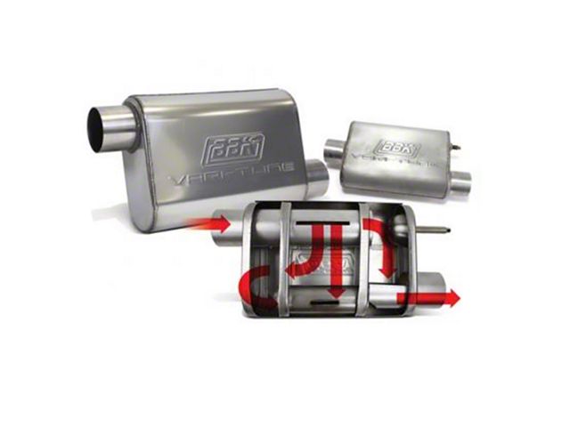 Camaro universal Vari-tune mufflers are a great performance addition for any Camaro. American designed and built, these performance mufflers are one of a kind, offering a muffler that can be adjusted for sound and horsepower by just moving the adjustment screw under the car. The unique design of this superb muffler allows side-to-side tuning to cut out the drowning or resonance that often happens when at a low rpm. Available aluminized or in stainless steel and in 2.5", 2.75", and 3.0", these mufflers are offered in various offsets to insure proper fit on most aftermarket and OEM applications. When you are in the market for a new high-performance muffler, invest in a BBK universal Varitune muffler. Available at Rick"s Camaro today!