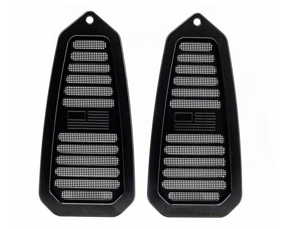 Billet Door Jamb Vents with FLAG logo; Black Anodized (67-69 Camaro)Find parts that fit my vehicle