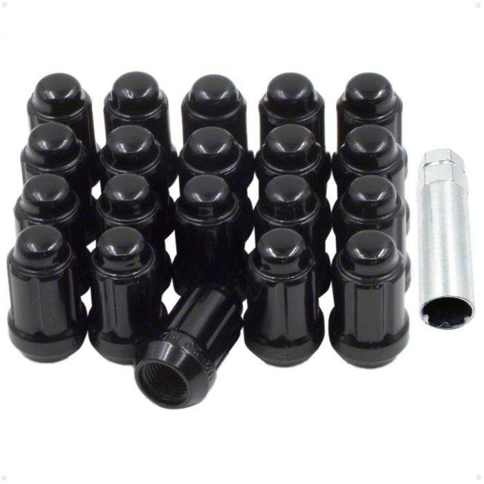 Strong and Stylish. Secure and stylize your Camaro with the Black 6-Spline Lug Nut Kit; 12mm x 1.5; Set of 20. This comprehensive set is designed to provide your car with both enhanced security and a sleek, aggressive look thanks to the distinctive 6-spline design and striking black finish. Crafted from high-strength steel, these lug nuts are built to withstand the rigors of daily driving and high-performance applications alike. The durable construction is complemented by a corrosion-resistant coating, ensuring long-lasting reliability and a consistently fresh appearance.