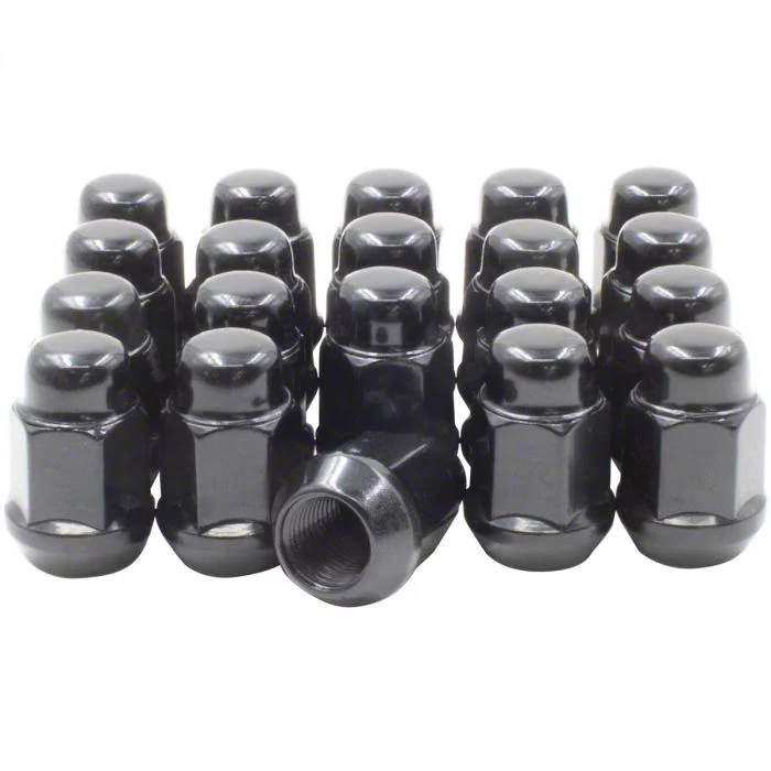 Bulge Acorn Design. This Black Bulge Acorn Lug Nut Kit comes in a set of 20 and features a 12mm x 1.5 thread size, ensuring compatibility with your Camaro. The bulge acorn design offers both an aesthetically pleasing appearance and reliable functionality, making it an excellent choice for enhancing your vehicle's overall look.