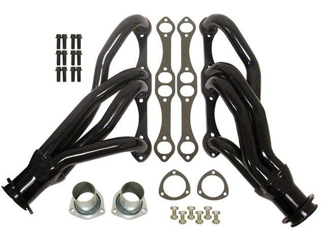 Rick's Camaro is proud to introduce these high quality painted black shorty headers at an affordable price. These headers will make your engine compartment look better plus add some horsepower to the rear wheels. These shorty headers have 1 5/8" tubing, a 3/8" flange, and a big 3" collector end. Always choose quality, choose Rick's Camaro for superior restoration, and performance products!