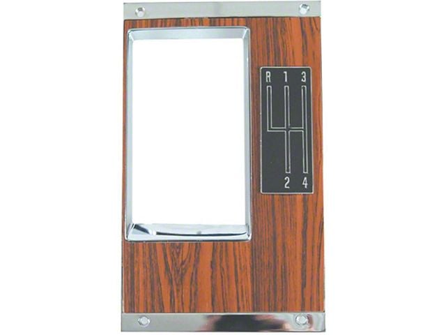 Center Console Shifter Plate, Manual Transmission, 4-Speed Shift Pattern, With Rosewood Insert (1969 Camaro)Find parts that fit my vehicle
