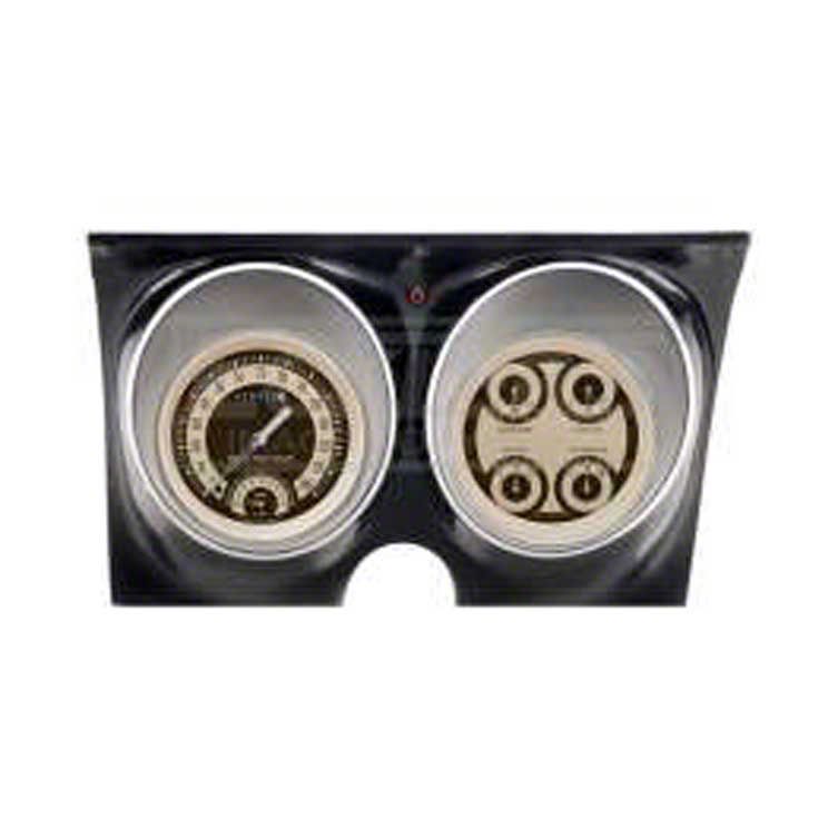 Custom gauges let you update your 1967 or 1968 Camaro interior in an afternoon. Ricks Camaros offers a variety of gauge options designed to help you do just that. The Nostalgia VT series gauge set from Classic Instruments feature a cream and brown face with chrome pointers. The 140 mph speedometer has a built in tachometer and the quad gauge gives you fuel level, oil pressure, water temperature and volt levels at a glance. Lenses, bezels and senders are included. Let Ricks Camaros help you give your 1967 or 1968 Camaro interior a mini makeover with custom gauge options from Classic Instruments.