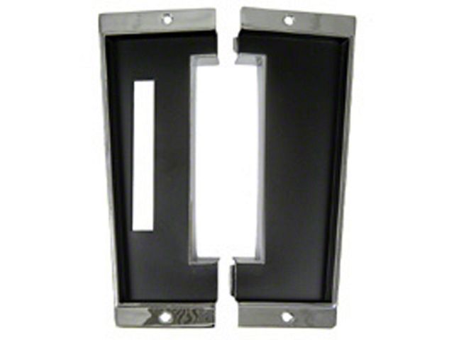 Excellent reproduction of the original GM two piece console shift plate. Hard diecast plated with show quality chrome and correct black matte finish.