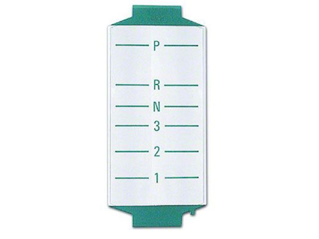 The factory shift dash indicator in your 1968 or 1969 First Generation Camaro's dash can often break after excessive use. While the indicator was originally located in the dash clutser, the parts used to repair the factory set up were often very difficult to find. Rick's Camaros is happy to offer this new restoration correct center console shifter indicator that allows you to relocate the read-out to the actual console. Manufactured by Muscle Car Industries, this shifter position indicator has correct green color font, sharp defined edges, a crystal clear acrylic, and a thick peel-and-stick polished plastic plate that will fit in F-Body Camaros with TH350 or TH400 Turbo Hydra-Matic automatic transmission. With this new insert,