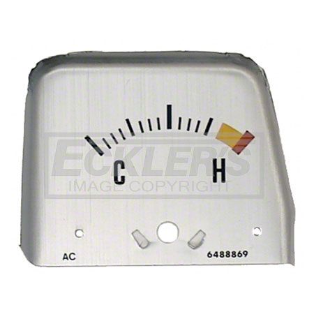 This Camaro reproduction water temperature console gauge face plate has been manufactured to original factory specifications using today's modern manufacturing techniques. You will find the fit and finish will work superbly for your restoration. In addition, using a reproduction water temperature console gauge face Plate from Rick's will add authenticity and value to your Camaro.