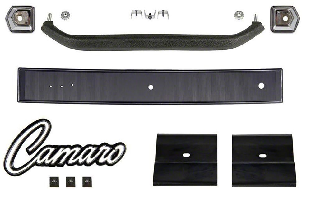 <p> </p> <p>This is a great grab bar kit for your 1969 Camaro. Over the years you and your passengers can be rough with the doors resulting in broken panels and bars with missing bezels and emblems. That is why Rick's Camaro offers a dsah panel grab bar kit that includes trim plate, grab handle, bezels, emblem, mount plates and hardware for your classic Camaro. Trust Rick's Camaro for all your 1969 Camaro restoration parts.</p><br>1969 Dash Panel Grab Bar Kit