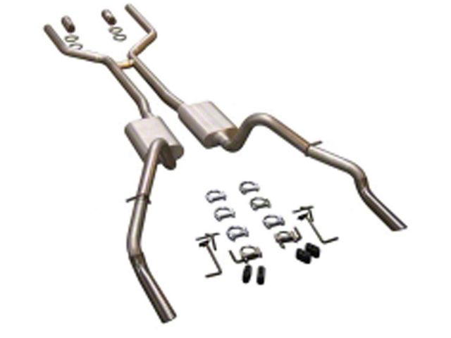 Experience the famous Flowmaster American Thunder sound by installing this dual exhaust system on your Camaro. In addition to the commanding V-8 exhaust note, the improved exhaust flow increases horsepower and efficiency on small or big block engines. Starting from the transmission crossmember, you have 2-1/2" pipe diameter all the way back to the rear factory location exit. Equipped with Delta Flow Series 44 mufflers for a deep powerful sound with low interior resonance, this complete kit includes aluminized tubing, an H-pipe, stainless steel exhaust tips and all necessary hardware for an easy bolt-on installation. This system does not fit convertible models.