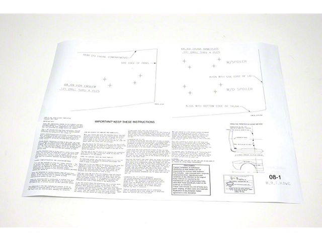 When you decide to install new emblems and body moldings to the sheet metal of your 1968 Chevrolet Camaro, it can be daunting to get started. You want an exact fit on your Super Sport, but you might lack the proper materials. Rick's Camaros is happy to be your solution, by offering the best emblem and body template kits for your F-Body. These easy to use full-size digitally rendered emblem placement templates will exactly locate all body, fender,hood, header, and trunk lid emblem holes quickly and professionally. We also offer templates for lower body moldings, rear quarter panel louvers, backup lamps, antenna hole placement, sidemarker locations, and fenderwells. Don't spend another moment agonizing on how to best apply your new emblems or body components. Make the job easy! Trust