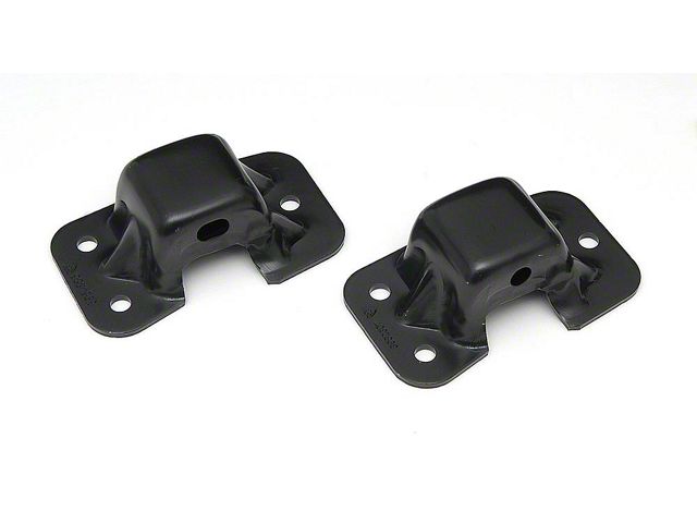 The engine mounting brackets on your 1970, 1971, or 1972 second generation Camaro are made to secure your engine motor mounts, which are meant to keep your engine in place and away from the radiator core or fan shroud. All parts are essential in your F-Body, but your mount bracket can rust over time from fluid exposure or from the constant barrage of outside elements. Eventually your brackets may lose their hold and fall off or break, leaving your motor mount and other engine components vulnerable. Rick???s Camaros is happy to offer these new replacement engine frame mount brackets, made from high quality materials and correct stamped steel with correct thickness. These metal brackets attach to the crossmember of