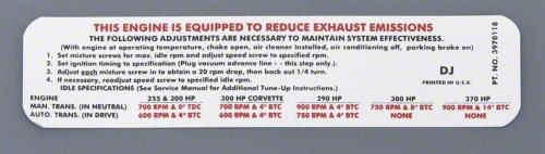 This Camaro reproduction emissions decal has been manufactured to original factory specifications using today's modern manufacturing techniques. You will find the fit, finish and function will work superbly for your restoration. In addition, using a reproduction emissions decal from Rick's will add authenticity and value to your vehicle.