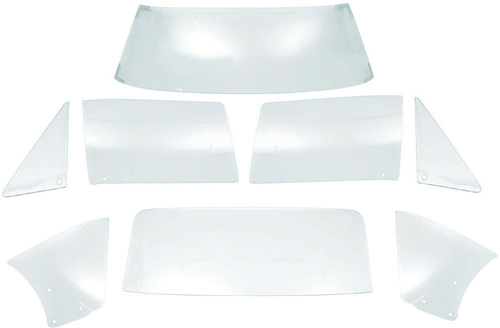 - Kit Includes, Windshield, Back Glass, (2) Vent Glass (2) Quarter Window Glass And (2) Door Glass
