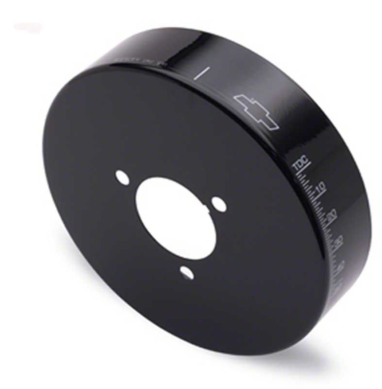 1969, 1970, 1971, 1972, 1973, 1974, 1975, 1976, 1977, 1978, 1979, 1980, 1981, 1982, 1983, 1984, 1985 Camaro small block Chevrolet engine is durable and avalible for dress up items. Ricks Camaros offers this Harmonic Balancer Cover for 6-3/4" balancer for small block chevrolet engines. This cover eliminates the need for the timing tab, mounts directly to the center hub, eliminates outer ring inertia slippage, is made from high quality aluminum and has the classic Chevrolet Bowtie engraved in the cover. Your 1969, 1970, 1971, 1972, 1973, 1974, 1975, 1976, 1977, 1978, 1979, 1980, 1981, 1982, 1983, 1984, 1985 Camaro engine will never look better. Trust Ricks Camaros for all your parts needs.