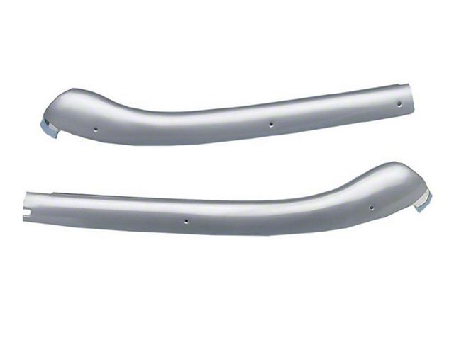 The Camaro convertible header moldings are the moldings which the convertible top weatherstripping comes into contact with at the top of the Camaro windshield. So, the header chrome really takes a beating from the elements and it is the first thing you see when you let the convertible top down on your Camaro. Rick's Camaros has the best quality molding for your Camaro convertible top header you can buy. This pair of moldings fits 1967, 1968 and 1969 standard Camaro, Super Sport (SS) and Rally Sport (RS) Convertibles. But, they are correct for Late 1968 and 1969 because Ralph Nader and the DOT didn't like bright items on the front of cars and the chrome 1967 header moldings were changed for the silver coated header moldings mid-1968.