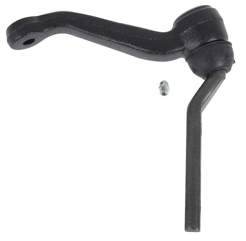 This pivoting support for the steering linkage appears on older recirculating ball-type steering systems (pre-rack & pinion) and functions like the pitman arm in a rack and pinion system. This cast-iron steering arm features two holes for mounting to the frame, a rubber boot on the mounting section of the idler arm and features an eyelet or opening on the end that attaches to the center drag link. Each assembly inclides: (1) Arm, (1) Bracket, (1) Dust Boot, (1) Lock Nut, (1) Grease Fitting.