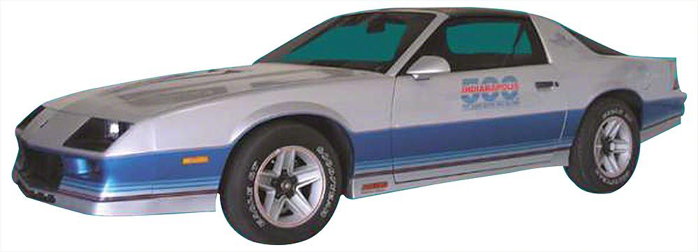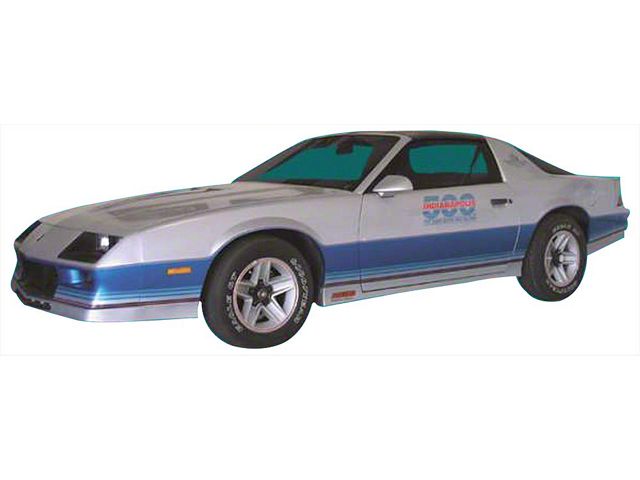 1982 Camaro was the start of the third generation for camaro. Ricks Camaros offers this correct, Indy Pace Car Decal Kit, 1982,for your restoration projecto or tribute car. This kit includes: 2 "Indianapolis 500" door decals 2 Indy Speedway flying tire sail panel decals 2 "CAMARO" windshield decals (front & rear) 2 Center hood stripes 1 Front hood stripe (set) 1 Rear hood stripe (set) 10 Upper body pre-molded pinstripes 2 Front end panel lower stripes 2 Front fender front lower stripes 2 Front fender rear lower stripes 2 Door lower stripes 2 Rear quarter panel front lower stripes 2 Rear quarter panel rear lower stripes 2 Rear bumper lower stripes Squeegee and Instructions. Do not settle for just any replacement decal kit f