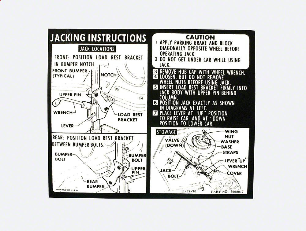 Jack Instruction Decal, With Full Size Spare (71-72 Camaro)