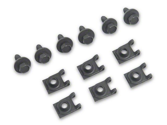 Your 1967-1981 Camaro's J-nuts on the front leaf spring cup are constantly exposed to adverse weather conditions, meaning they usually end up so rusted that the spring mount bolts will strip out the threads on the bolt, or even break the clip. Rick's Camaros offers this leaf spring front mounting bracket set, complete with J-nuts and bolts, to replace your old rusted J-nuts and keep your leaf springs working smoothly. Matching factory specifications, this set is actually stronger than the imported reproductions, and has correct black oxide plating. This set contains six J-nuts and six bolts for your mounting bracket project. Don't wait until you have to them the J-nuts out in the middle of replacing your leaf springs; get this mounting kit today!&n
