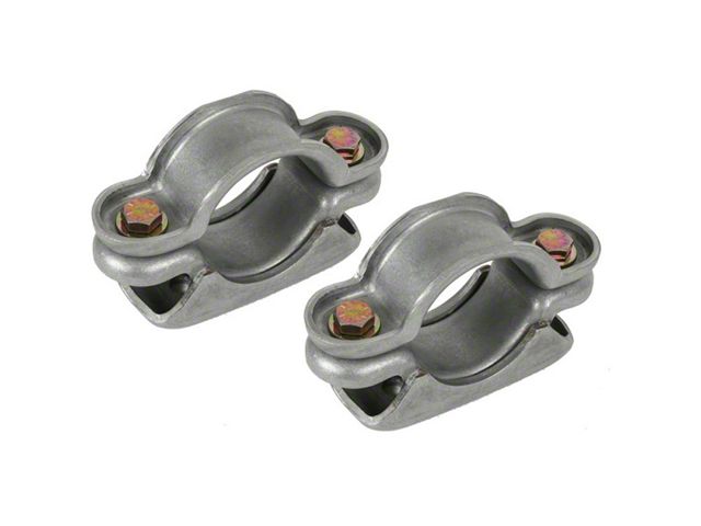 These leaf spring pads are used when installing a new rear end housing or when relocating your leaf springs to accommodate a larger rear tire. The steel adjustable leaf spring pads clamp to any 3" axle tube. Simply locate and center the axle housing, set the pinion angle and leaf spring positions, and then clamp the spring pads in place. We recommend you permanently weld the spring pads in place after you set the pinion angle. The spring pads are compatible with 2-1/2" wide leaf springs.