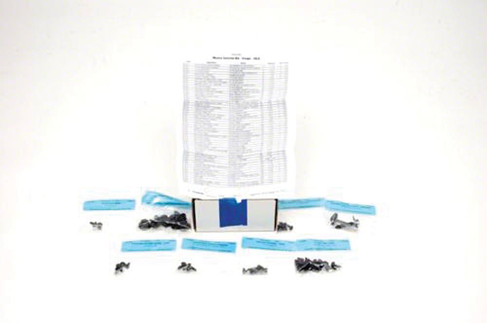 This the most complete master interior screw kit available. This kit takes all the guess work out of looking for the lost or rusted fasteners to complete that Camaro interior restoration. All Items are individually packaged and labeled, included with an item list sheet. You will not be disappointed in the master interior screw kit from Rick's.