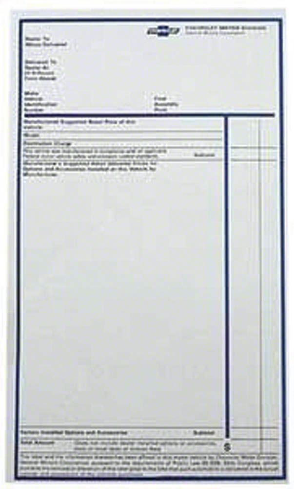 This Camaro reproduction new car window sticker has been manufactured to original factory specifications using today's modern manufacturing techniques. You will find the quality and appearance will work superbly for your restoration. In addition, using a reproduction new car window sticker from Eckler's will add authenticity and value to your Camaro.