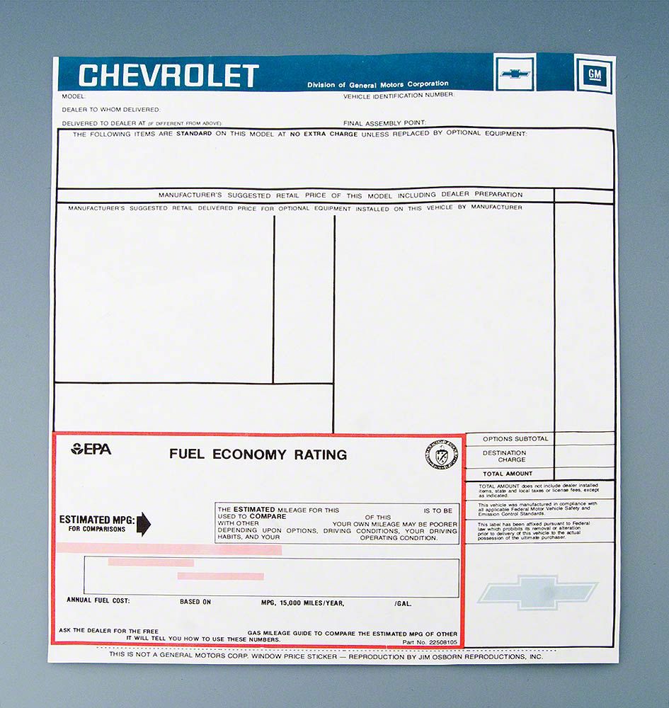 This Camaro reproduction new car window sticker has been manufactured to original factory specifications using today's modern manufacturing techniques. You will find the quality and appearance will work superbly for your restoration. In addition, using a reproduction new car window sticker from Eckler's will add authenticity and value to your Camaro.