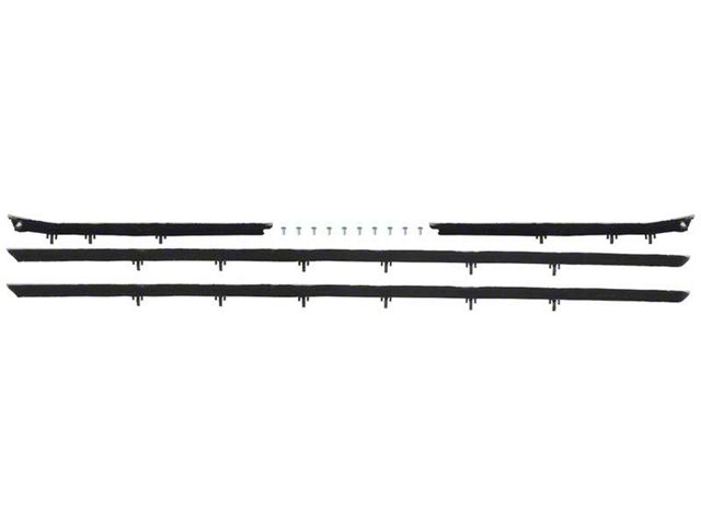 Original-style reproduction of the outer door and quarter window felts for 1968-69 Camaro coupe and Firebird coupe models withOUT the optional door reveal moldings. Features round chrome bead on window felt as original. Includes horizontal outer window strips for front door window and side quarter window and mounting screws for installation.