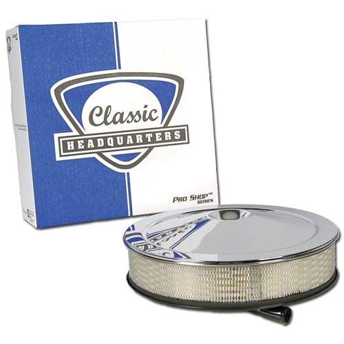 Superior quality reproduction of original special high performance air cleaner. Includes gloss black body with attached breather tube (1" hose), high pleat count performance air filter and our accurate reproduction OE quality triple chrome plated lid. (spacer needed for aftermarket carbs with electric choke) Officially Licensed GM Restoration Parts.