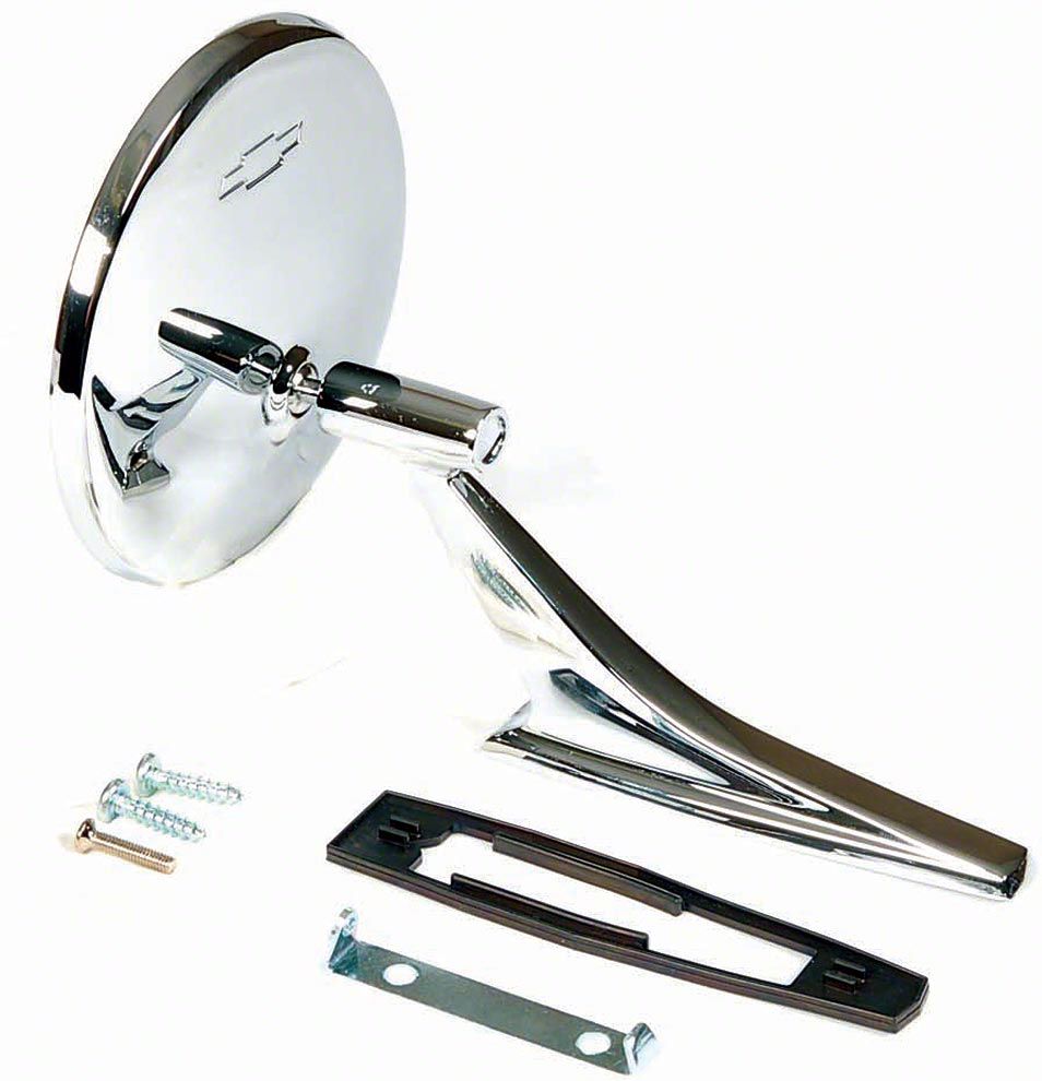 1967 Camaro is a true American muscle car. Ricks Camaros offers this quality, Outside Door Mirror, With Bowtie Emblem, for your restoration project or part replacement. Originally, the Bow Tie door mirror was available as a dealer installed option only. Now, you can add this Bow Tie mirror to your car anytime at a great price. A chrome plated outside door mirror with embossed bow tie emblem, this mirror will look great on your F-Body and includes all the necessary mounting tools and hardware to make for an easy installation. Rick's Camaros offers this quality mirror for the budget-minded Camaro restorer. This mirror can even be mounted on either the left or right side of your 1967 Camaro. From racers, show cars, hot rods, and daily drivers, you can trust Rick