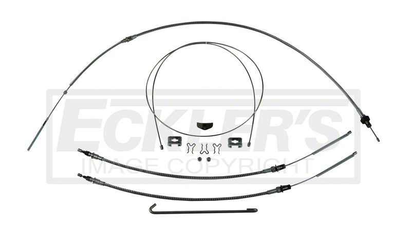 The parking brake cable system is crucial for your 1967-1969 first generation Camaro in order to use your park brake and secure your vehicle in place effectively. This can be especially important if you're parked on an incline or close to other cars. Over time, it is possible that cables can become loose, corroded with rust, or broken, leaving your cable system in disarray. It can be hard to pinpoint the missing cog in a complex system, so it might be best to replace your entire parking brake cable system, starting fresh with reliable parts. Rick's Camaros is happy to offer this complete kit of stainless steel parking brake cables and necessary mounting hardware. Designed for a floor mount parking brake, this kit includes the cables, cable brackets, stainless steel cable j