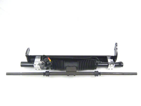 This uses a front steer center take off style rack & pinion attached to a one piece mounting bracket which bolts to the same mounting holes for the original steering box and idler arm. The center steer rack & pinion replicates the original steering linkage.