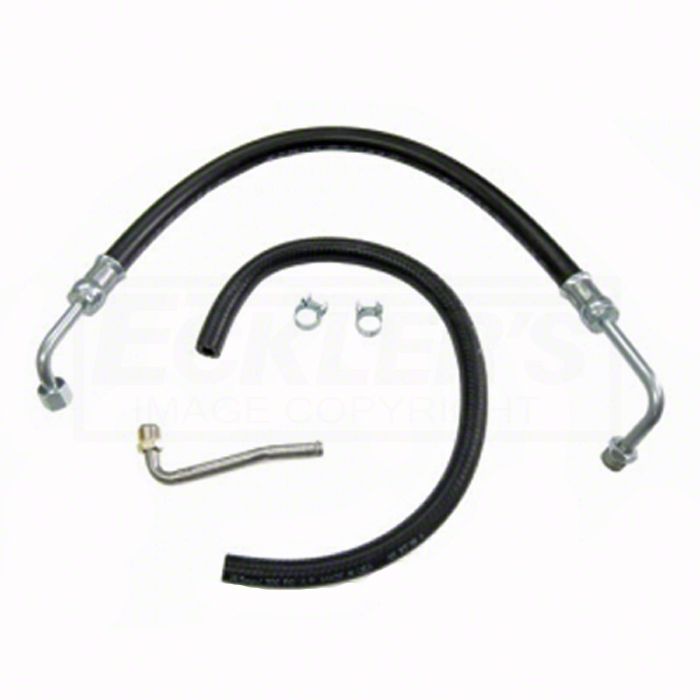 1967-1968 Camaro power steering systems take advantage of hydraulic pressure in order to ease the steering. Ricks Camaros offers this quality replacement, Power Steering Pressure Hose, KIt, All V8, for your restoration project or part replacement. Your Camaro power steering hoses are subjected to the engine compartment's relentless heat and constant pressure from the pump's hydraulic fluid. As a result, hoses can wear out or burst causing steering to become virtually impossible. Do not take a chance with your classic 1967, 1968 Chevy Camaro. Rick's Camaros offers show correct reproduction power steering pressure hoses for your restoration, with the correct hose, fittings, and line bends. This power steering pressure hose,kit, all V8, will fit all V8 engines. When you replace your power ste