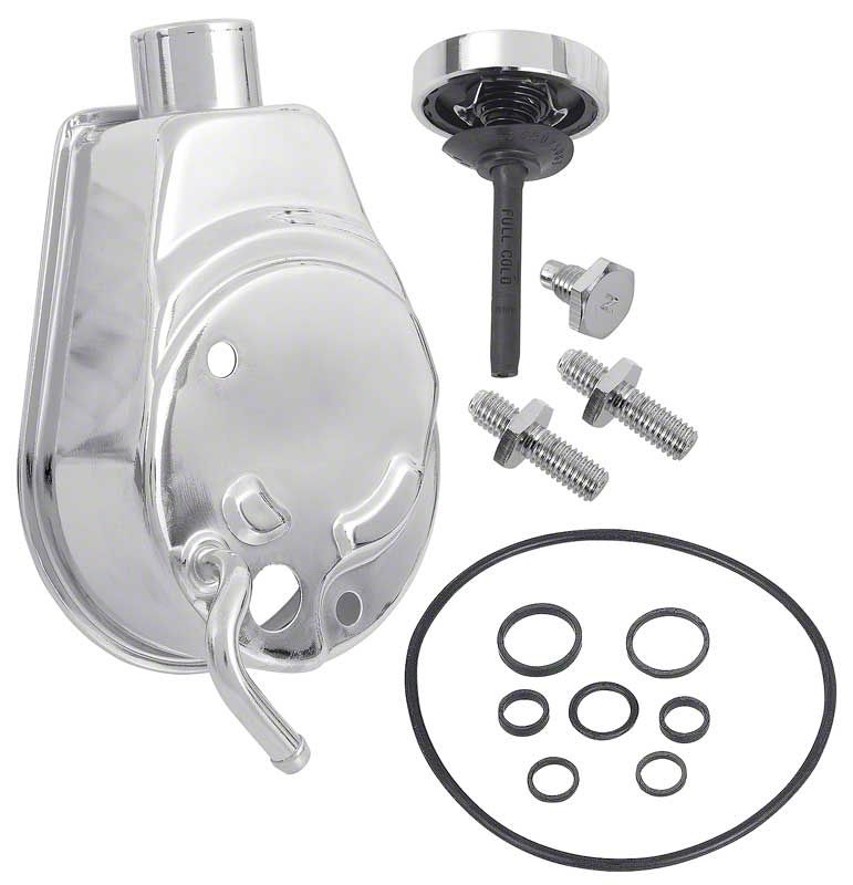 Reproduction of the original style power steering reservoir, vap and hardware for use with various 1970-75 Chevrolet models as listed. This reservoir comes with all o-rings and hardware necessary to install on your power steering pump. When appearance is a concern, this OE style reservoir will maintain originality but add a touch of chrome. Replace the old, dented, leaky, or missing reservoir with this custom reproduction.
