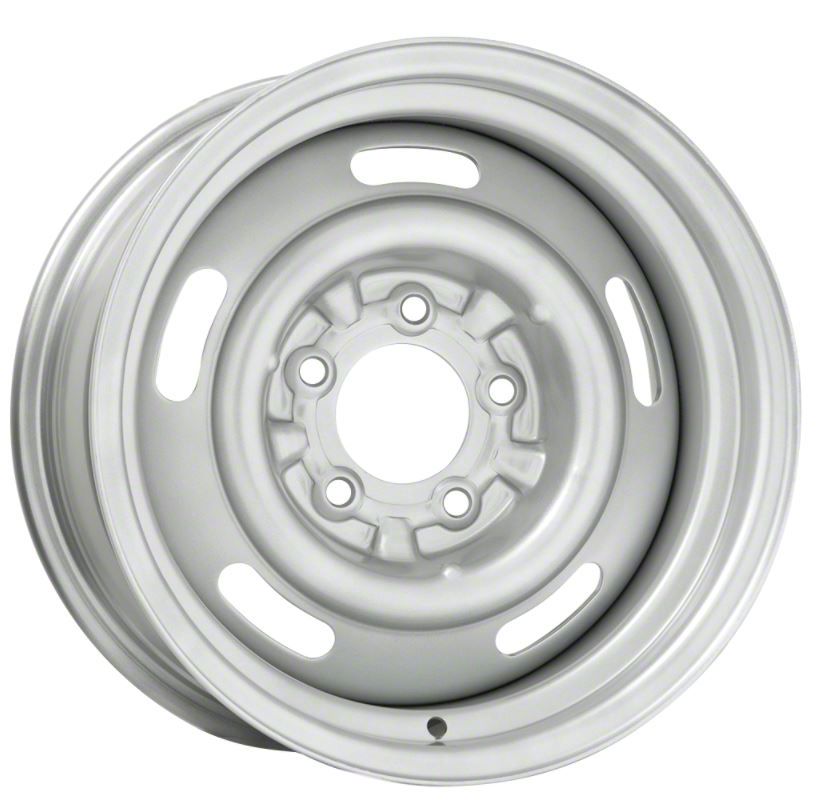 Roll your Camaro all the way back to it's original look with a set of these argent silver rally wheels from Rick's Camaro. These classic five-slot rally wheels recreated here in the USA give your Camarothe right touch of originality to make it stand out in any crowd. Just add rally caps, trim rings and tires from Rick's Camaro to complete your truck's perfectly restored look.