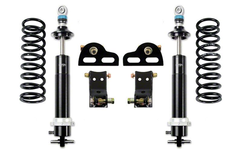 The Detroit Speed 1982, 1983, 1984, 1985, 1986, 1987, 1988, 1989, 1990, 1991, 1992 Camaro Coilover Conversion Kit allows the latest in coilover spring/shock technology to be bolted on bringing your cars handling and ride into the 21st century with our "Detroit Tuned" valving. The base coilover package offers extensive ride height adjustability and is optimized around a 2" drop from stock height. Installation requires only minor drilling on the existing axle bracket. Our optional single or double adjustable coilovers offer adjustability with multiple settings for both compression and rebound. The ultimate package is our monotube remote reservoir coilover set which offers separate fluid canisters for optimum adjustability and improved heat dissipation. Trust Rick's Camaro for all your 198