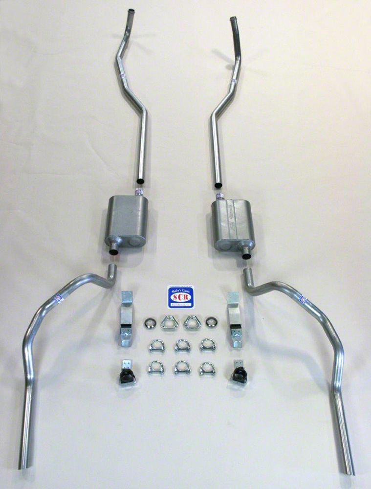 SCR Performance has teamed up with Rick's Camaros to bring you a true dual exhaust that uses the factory hanger and clamp set so you aren't having to drill the body and "Make it Work". This system is available in aluminized or stainless steel, Quick Flow or Classic Turbo mufflers and either 1967-68 Style tail pipes that turn down behind the rear wheel or the 1969 style that exits straight out the back.
